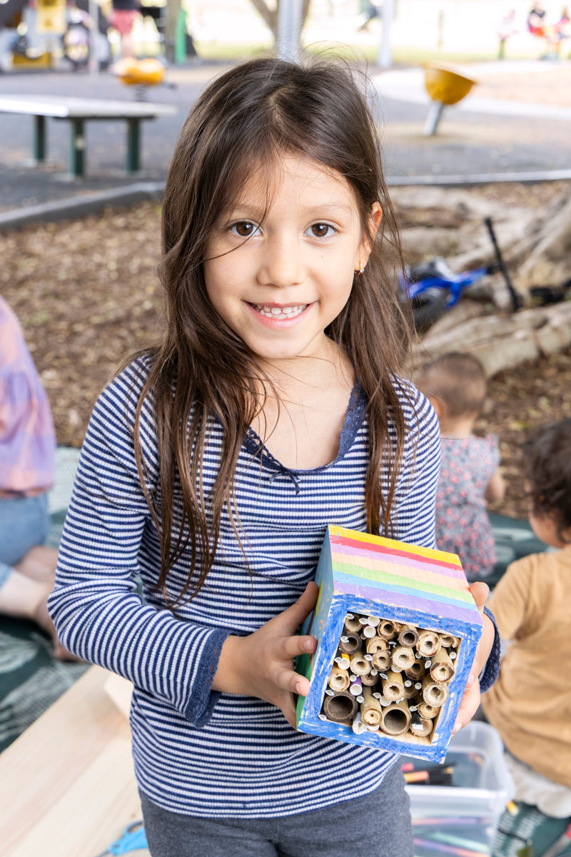 Children will learn about insects, their habitats, pollination and more! They’ll learn that insects use a bug hotel for three reasons, including hibernation. The students will each get to decorate and fill our hand-made, FSC-certified Australian pine wood bug hotels with bamboo and straws, which provide a safe place for solitary bees and other pollinators. We can also install a medium-sized, wooden bug hotel for you + beneficial flower seeds for an extra $50.