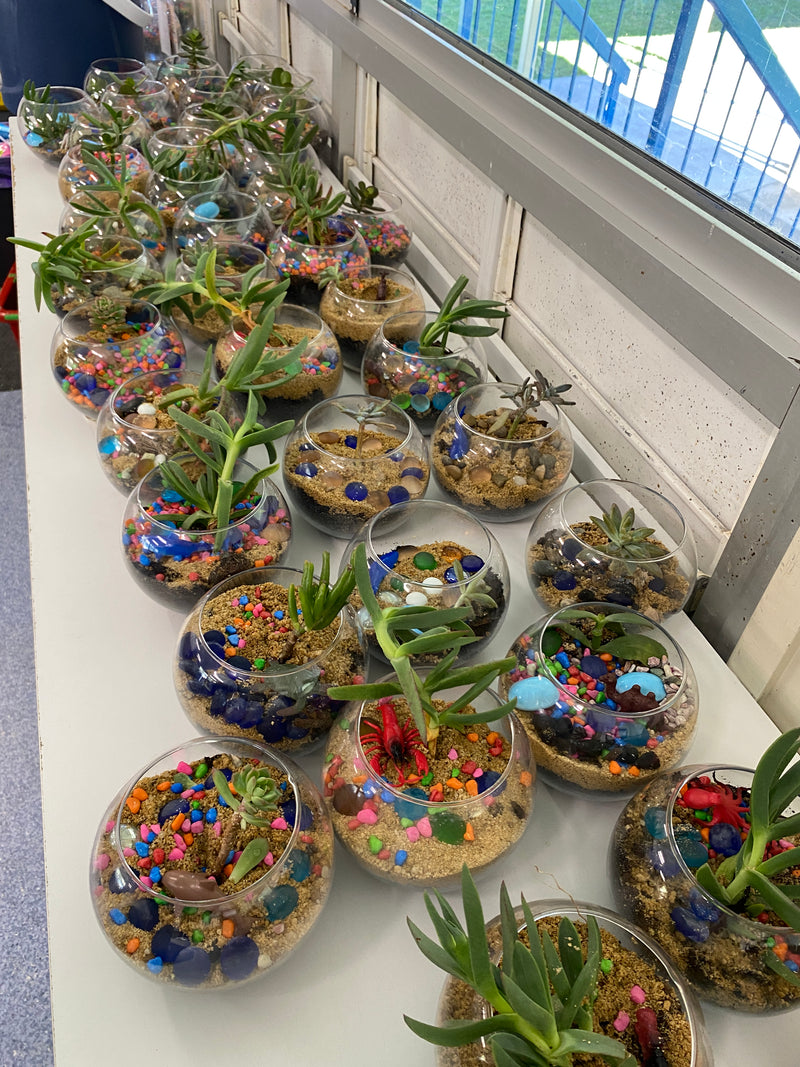 In this workshop, students learn about succulents, what they need to survive, and what adaptations they have to cope during droughts. Then we’ll demonstrate exactly how to get baby succulent pups for free through propagation. Next, we'll move onto creating and layering the terrariums, with each participant able to choose which succulent they want (we have a native succulent to chose from too)!
